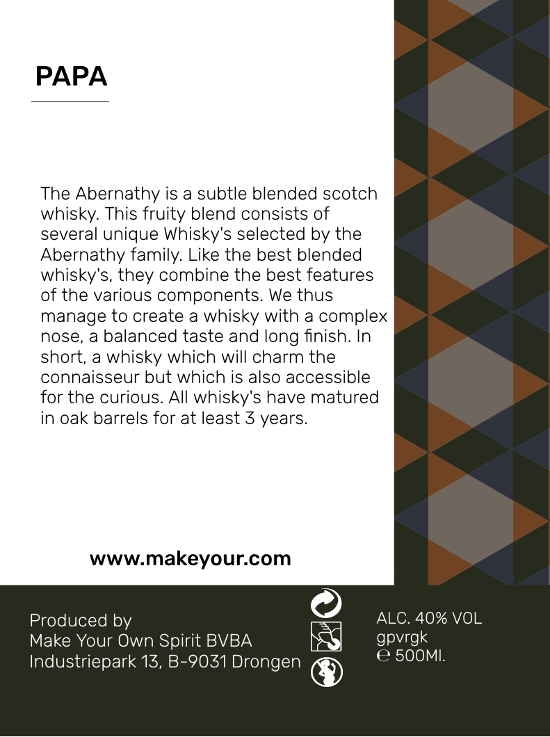 We work with an artisanal distiller from Scotland region Glenlivit. Together with a Belgian “Keeper of the Quaich”, we chose an outstanding blended whisky to offer the best price-quality.