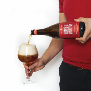 Is het bierpakket cadeau bestemd voor iemand die graag op terras zit, dan moet het blonde bier erin. In de zon proeft het namelijk opvallend lekkerder. Dat komt door de bitterfruitige smaak van de hoppen, die het een rijkelijk frisse indruk meegeven. Dankzij de nagisting op fles wijzigt die smaak naarmate je langer wacht, dus genieten van deze 7%’er kan op het gemak.