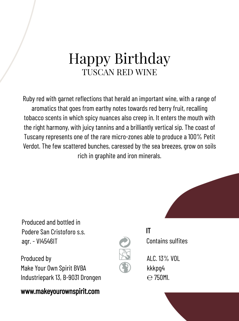 Wij vinden van het cruciaal belang onze klanten goede wijnen te kunnen bieden. Wijnen die we ook zelf met trots kunnen thuis schenken voor onze vrienden. Kortom gepersonaliseerde wijn flessen die er niet alleen schitterend uitzien maar ook zo proeven!