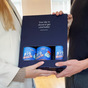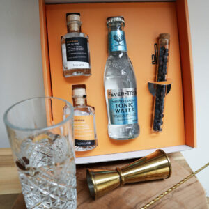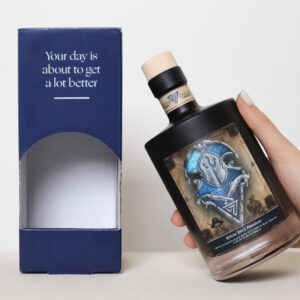 Eens je jouw fles ontworpen hebt kan je een geschenkverpakking kiezen met of zonder tonic. Ook is er keuze uit leuke extra’s