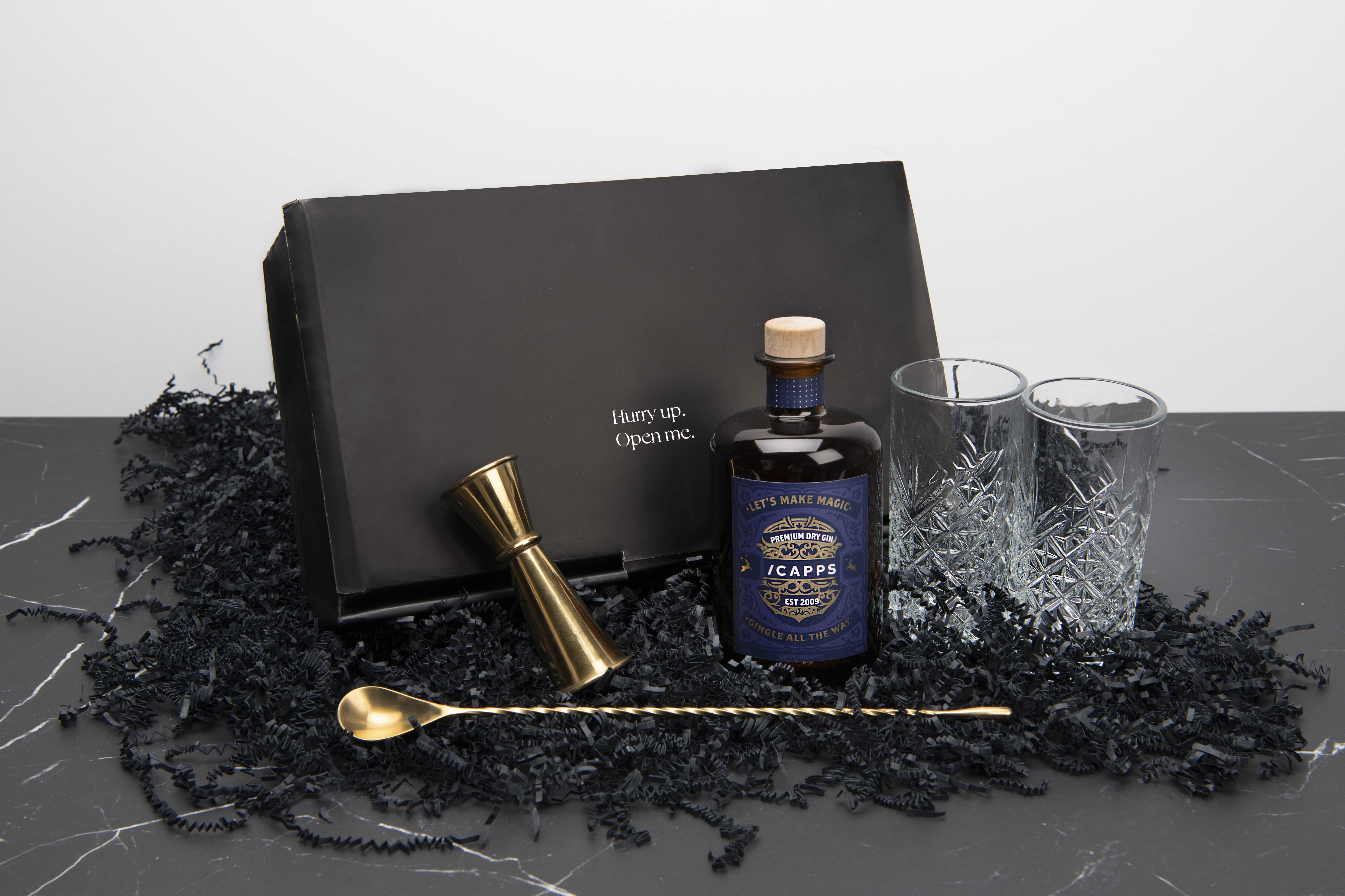 Eens je jouw fles ontworpen hebt kan je een geschenkverpakking kiezen met of zonder tonic. Ook is er keuze uit leuke extra’s