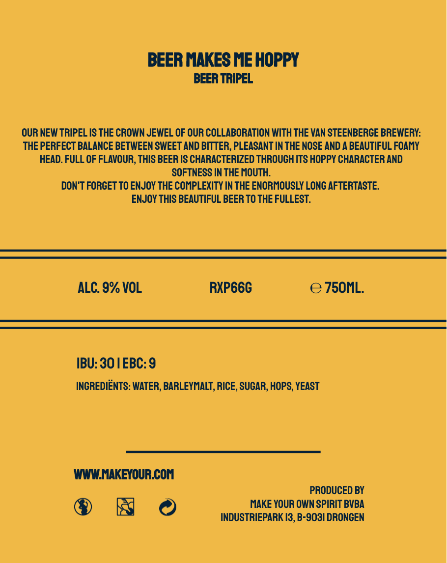 Wij werken met eigen ontworpen recepten in samenwerking met brouwerij Van Steenberge. Al onze recepten worden blind gescoord en zo zijn we zeker van de beste kwaliteit.