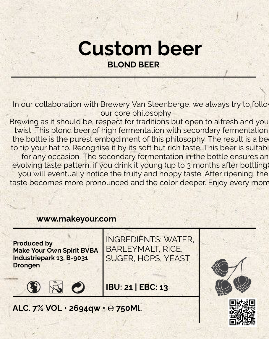 Wij werken met eigen ontworpen recepten in samenwerking met brouwerij Van Steenberge. Al onze recepten worden blind gescoord en zo zijn we zeker van de beste kwaliteit.