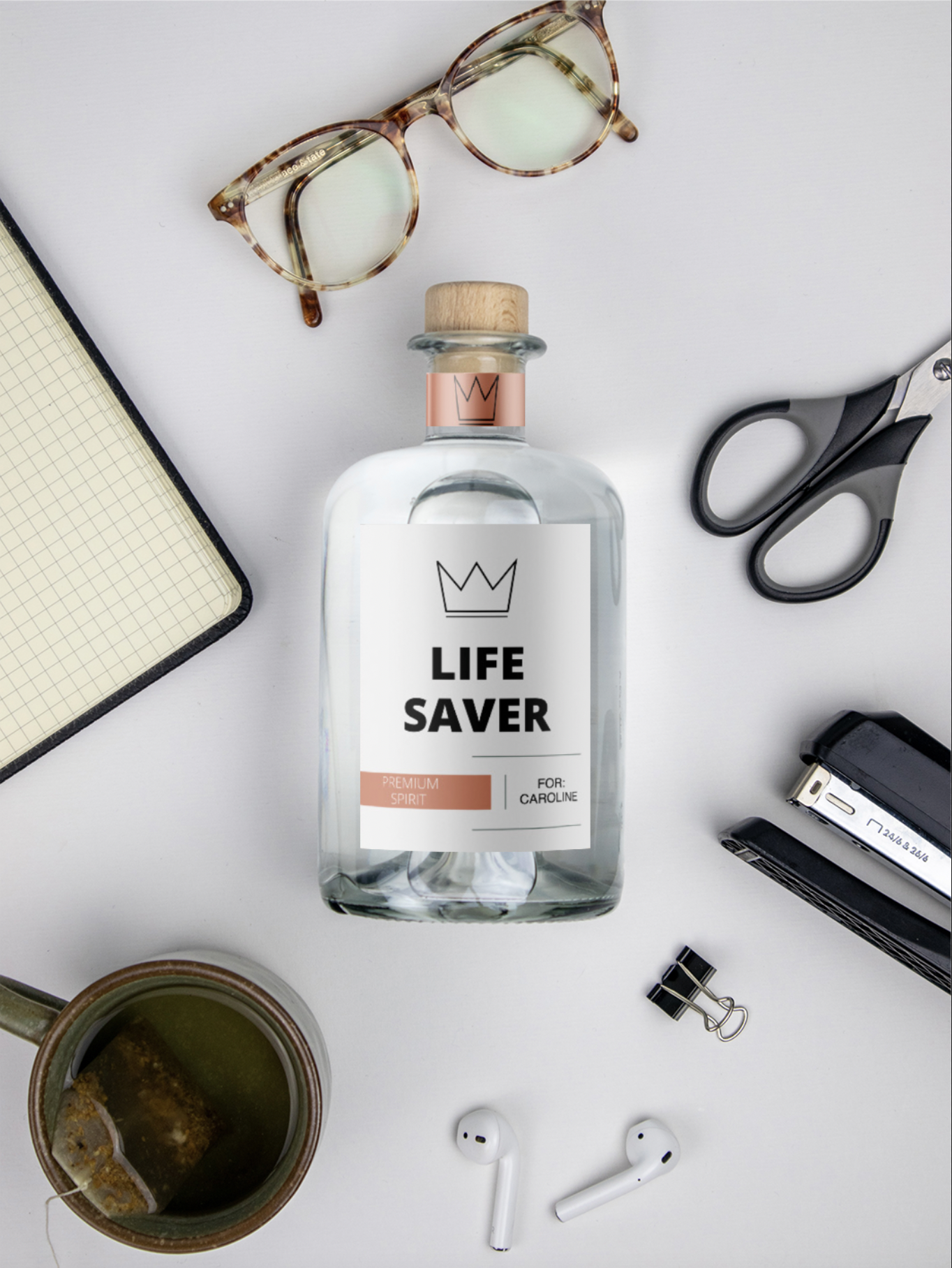 Eens je jouw fles ontworpen hebt kan je een geschenkverpakking kiezen met of zonder tonic. Ook is er keuze uit leuke extra’s