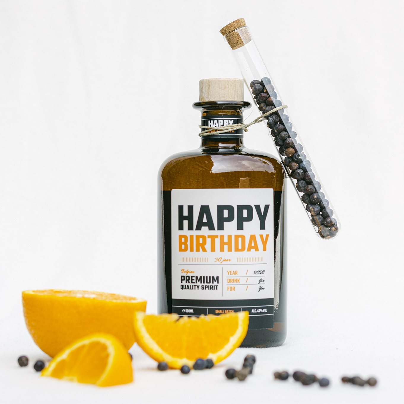Eens je jouw fles ontworpen hebt kan je een geschenkverpakking kiezen met of zonder tonic. Ook is er keuze uit leuke extra’s