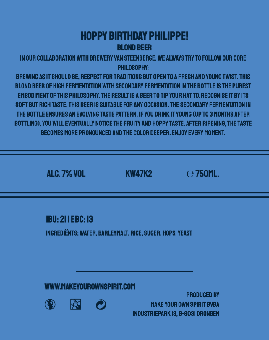 De bekrooning van onze samenwerking met brouwerij Van Steenberge is deze nieuwe Tripel: De perfecte balans tussen zoet en bitter, aangenaam in de neus en prachtig van schuimkraag.