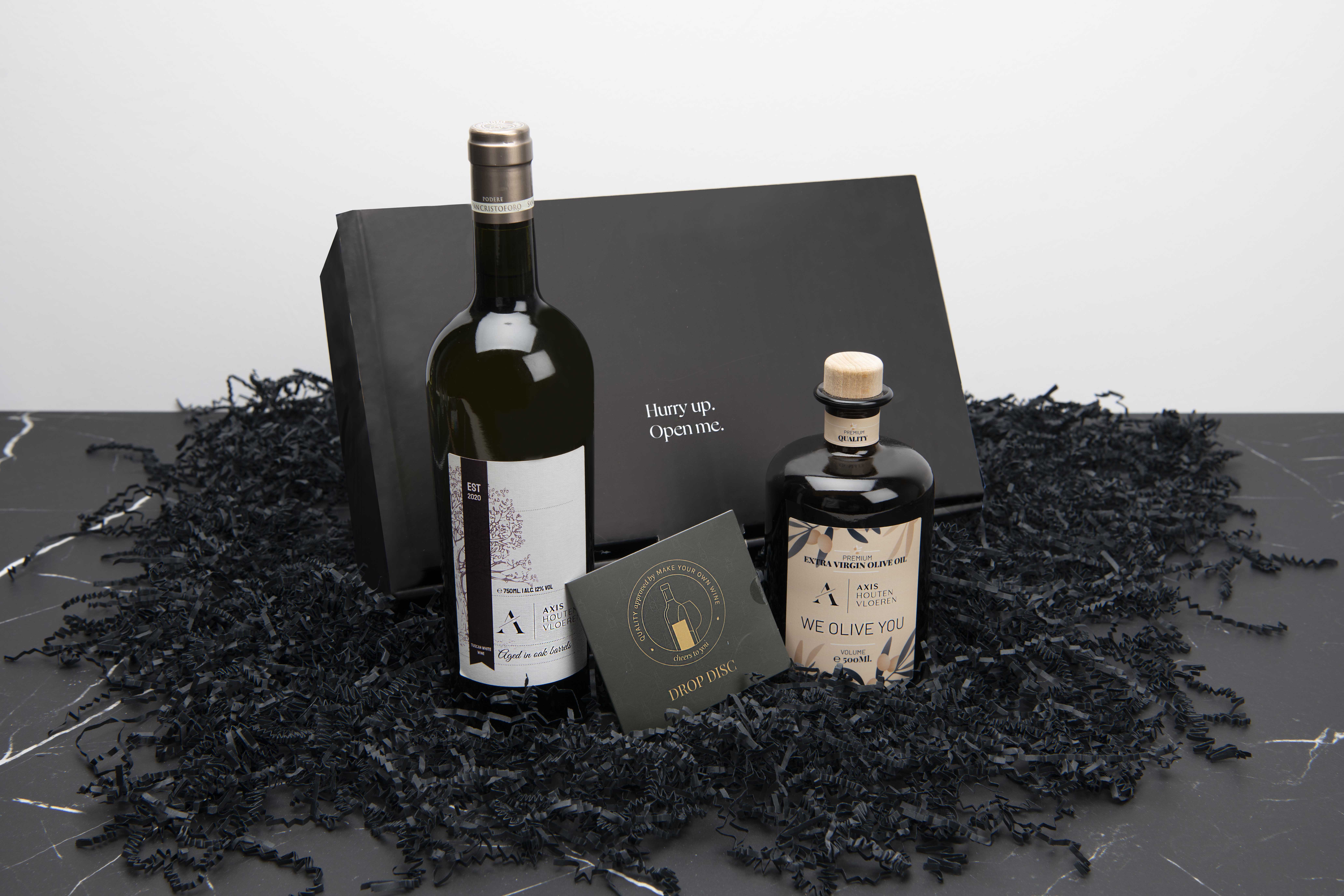 Eens je jouw fles ontworpen hebt kan je een geschenkverpakking kiezen met of zonder tonic. Ook is er keuze uit leuke extra’s
