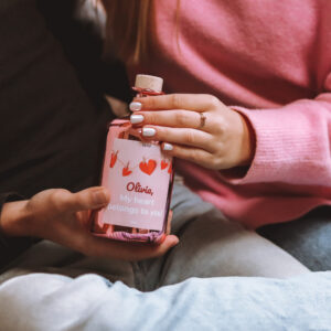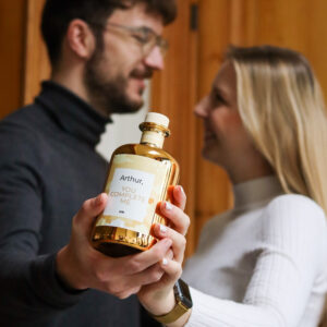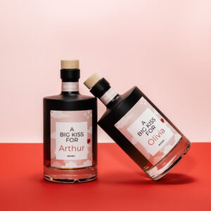 Eens je jouw fles ontworpen hebt kan je een geschenkverpakking kiezen met of zonder tonic. Ook is er keuze uit leuke extra’s
