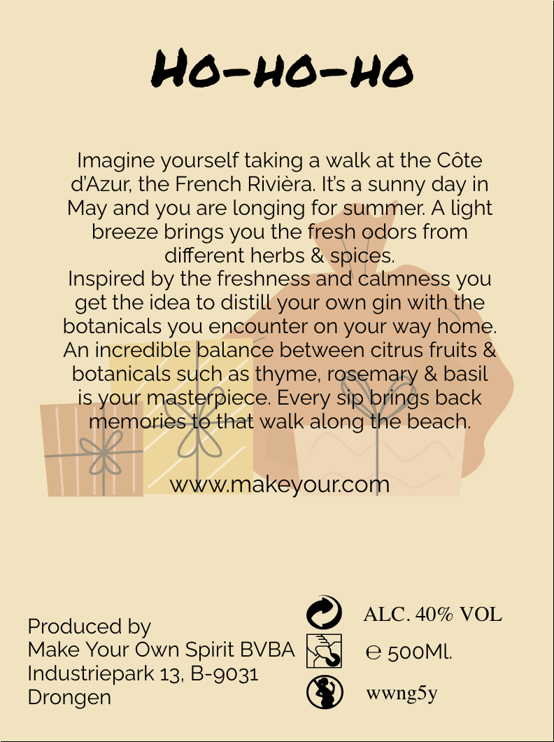 Botanicals: Jeneverbes, angelica, coriander, sinaasappel, tijm, rozemarijn, basilicum