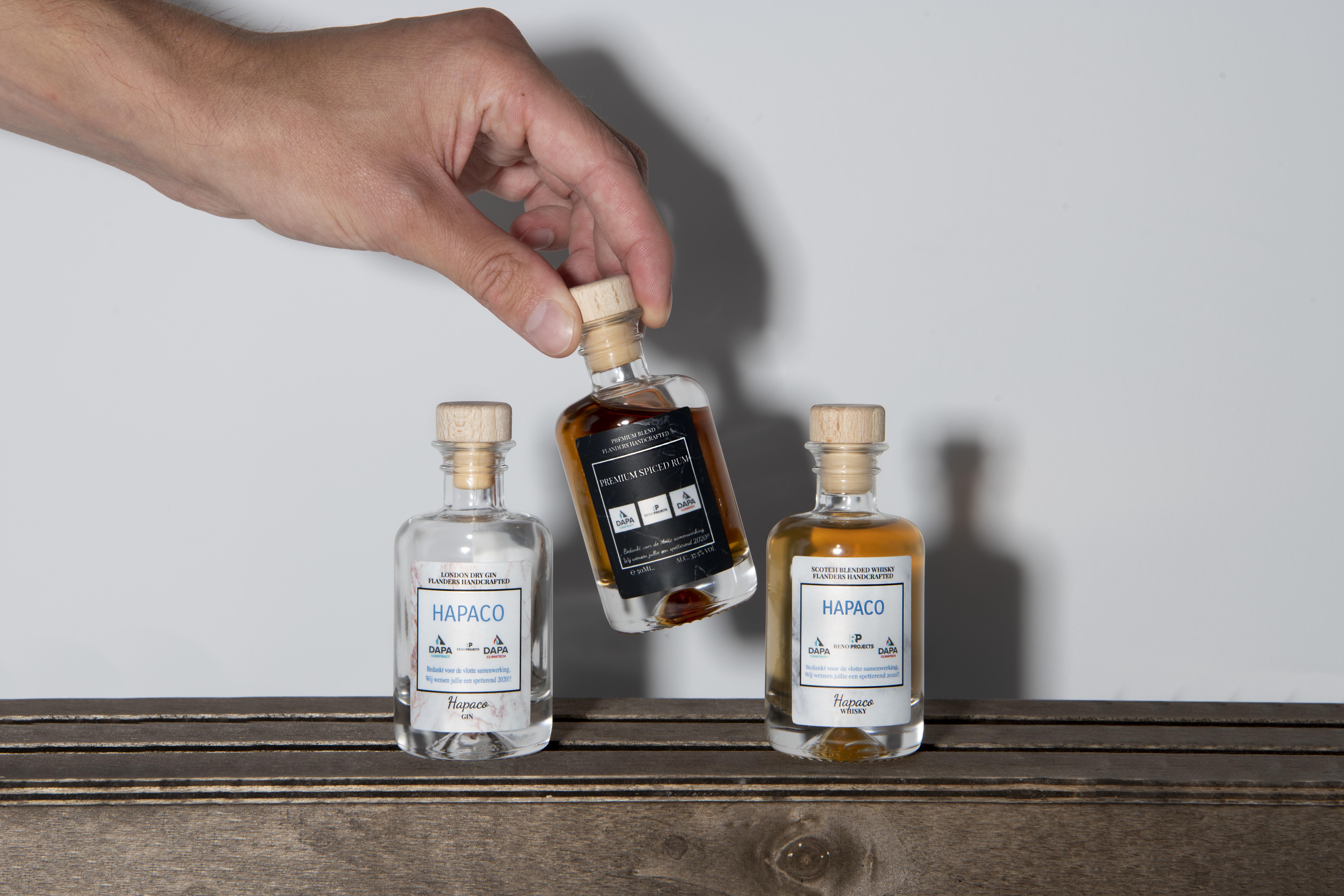 Eens je jouw fles ontworpen hebt kan je een geschenkverpakking kiezen met of zonder tonic. Ook is er keuze uit leuke extra’s