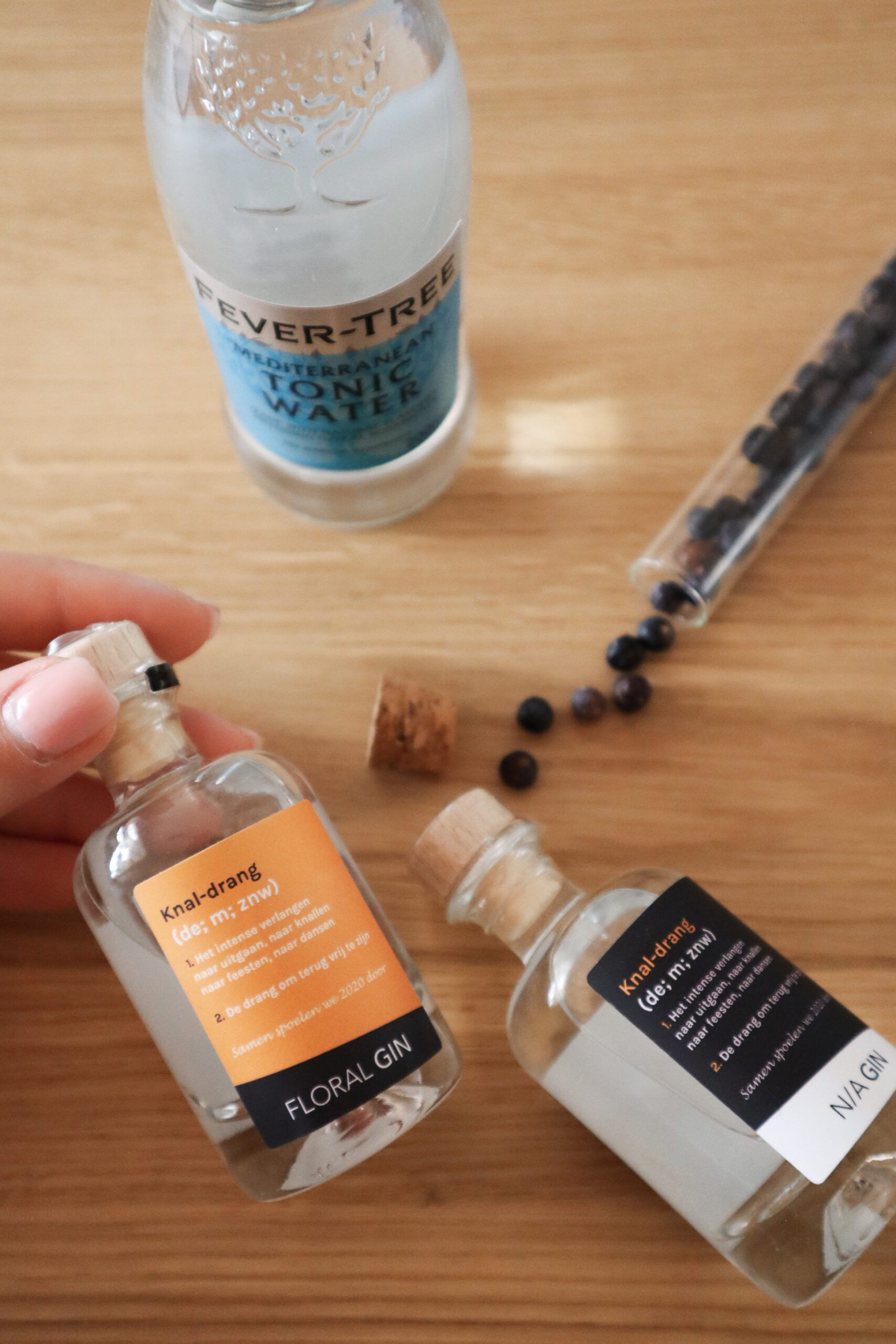 Eens je jouw fles ontworpen hebt kan je een geschenkverpakking kiezen met of zonder tonic. Ook is er keuze uit leuke extra’s