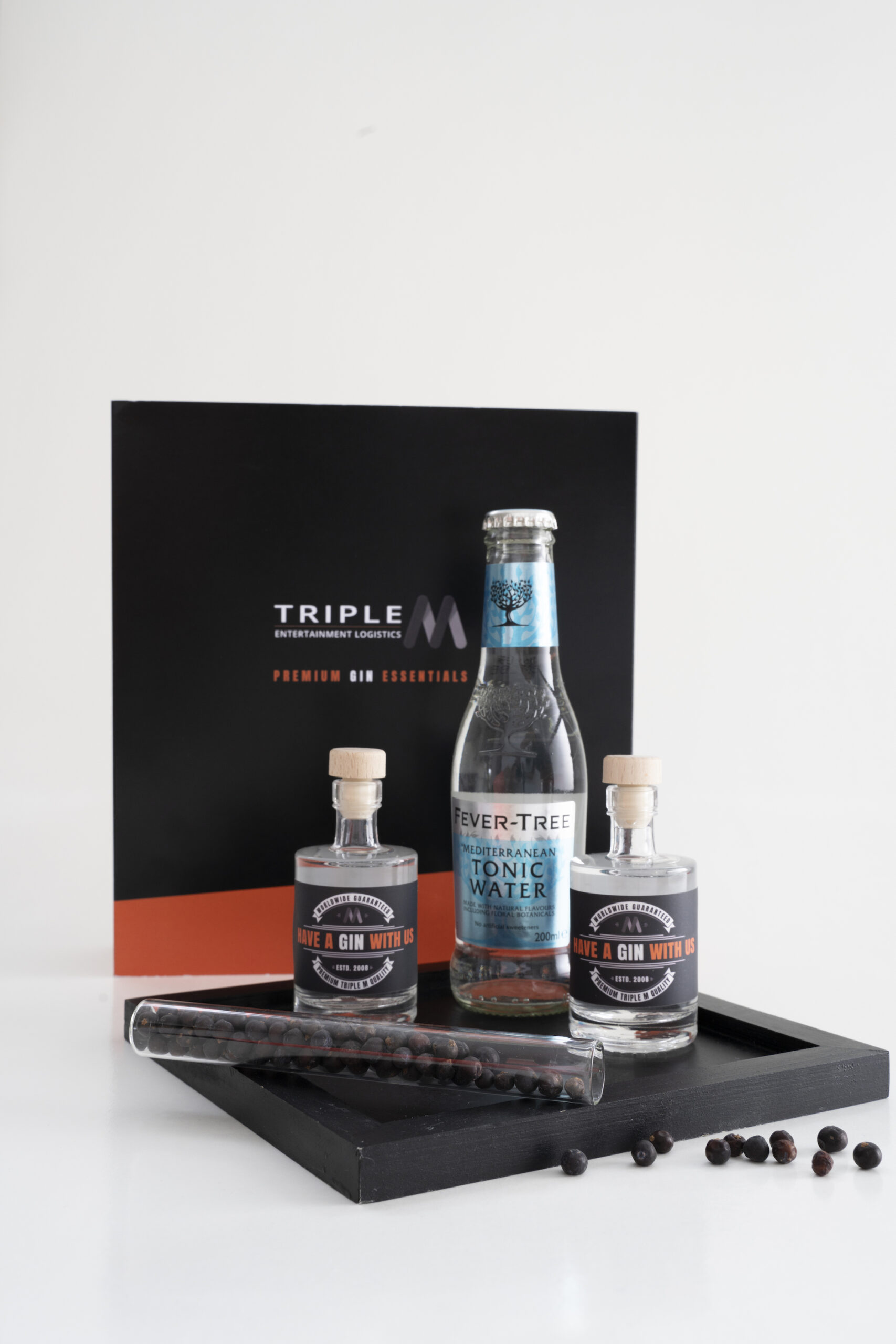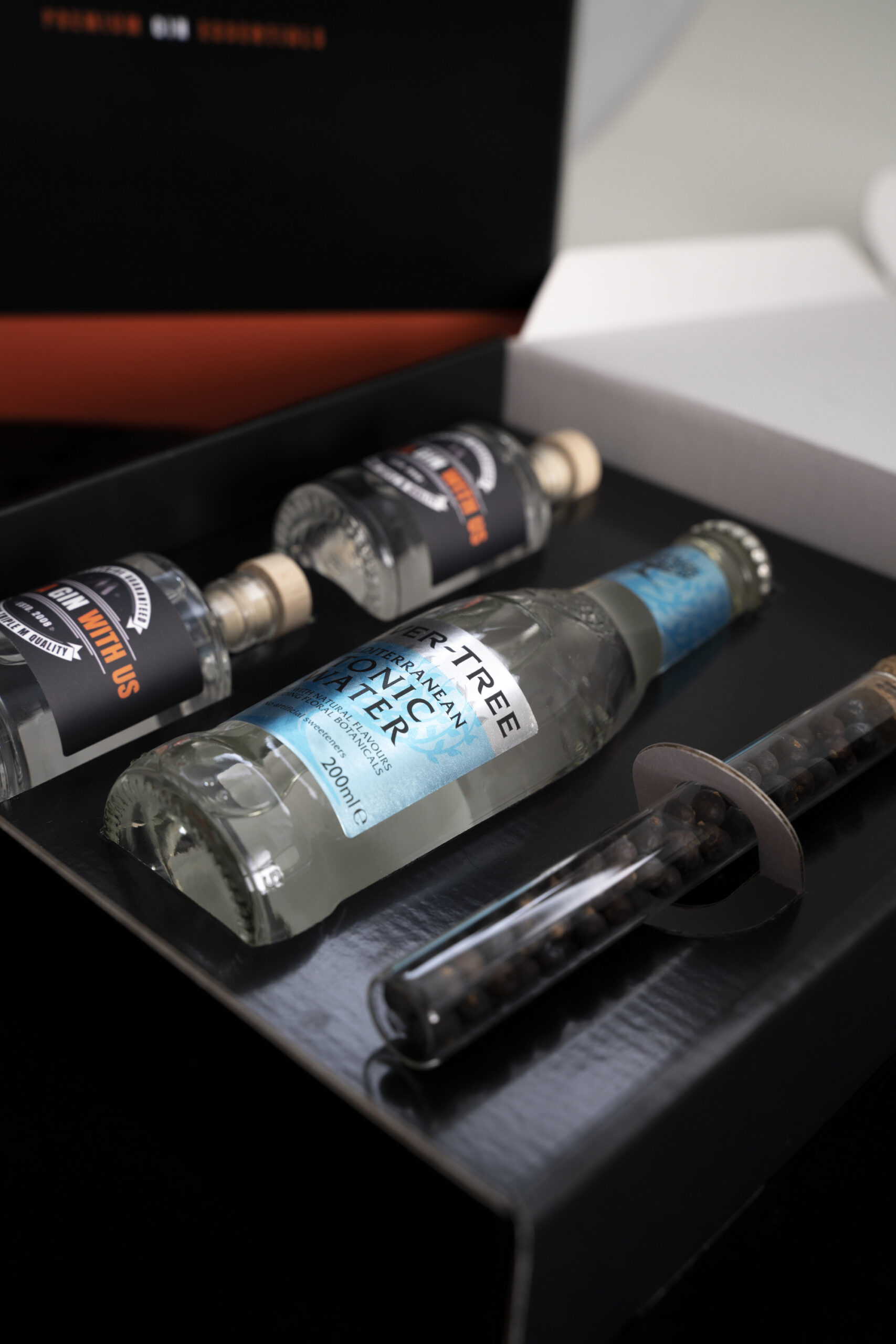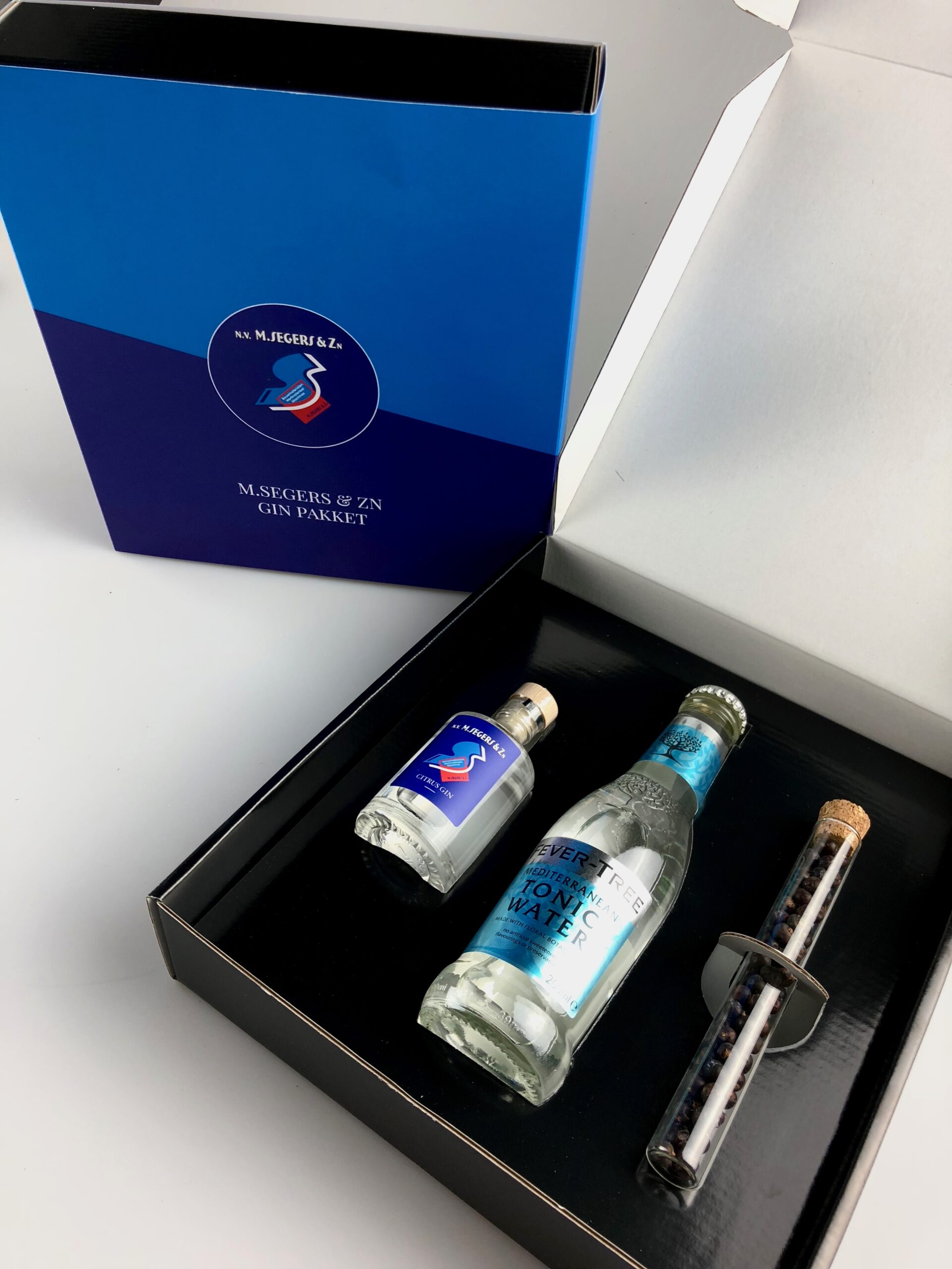 Eens je jouw fles ontworpen hebt kan je een geschenkverpakking kiezen met of zonder tonic. Ook is er keuze uit leuke extra’s