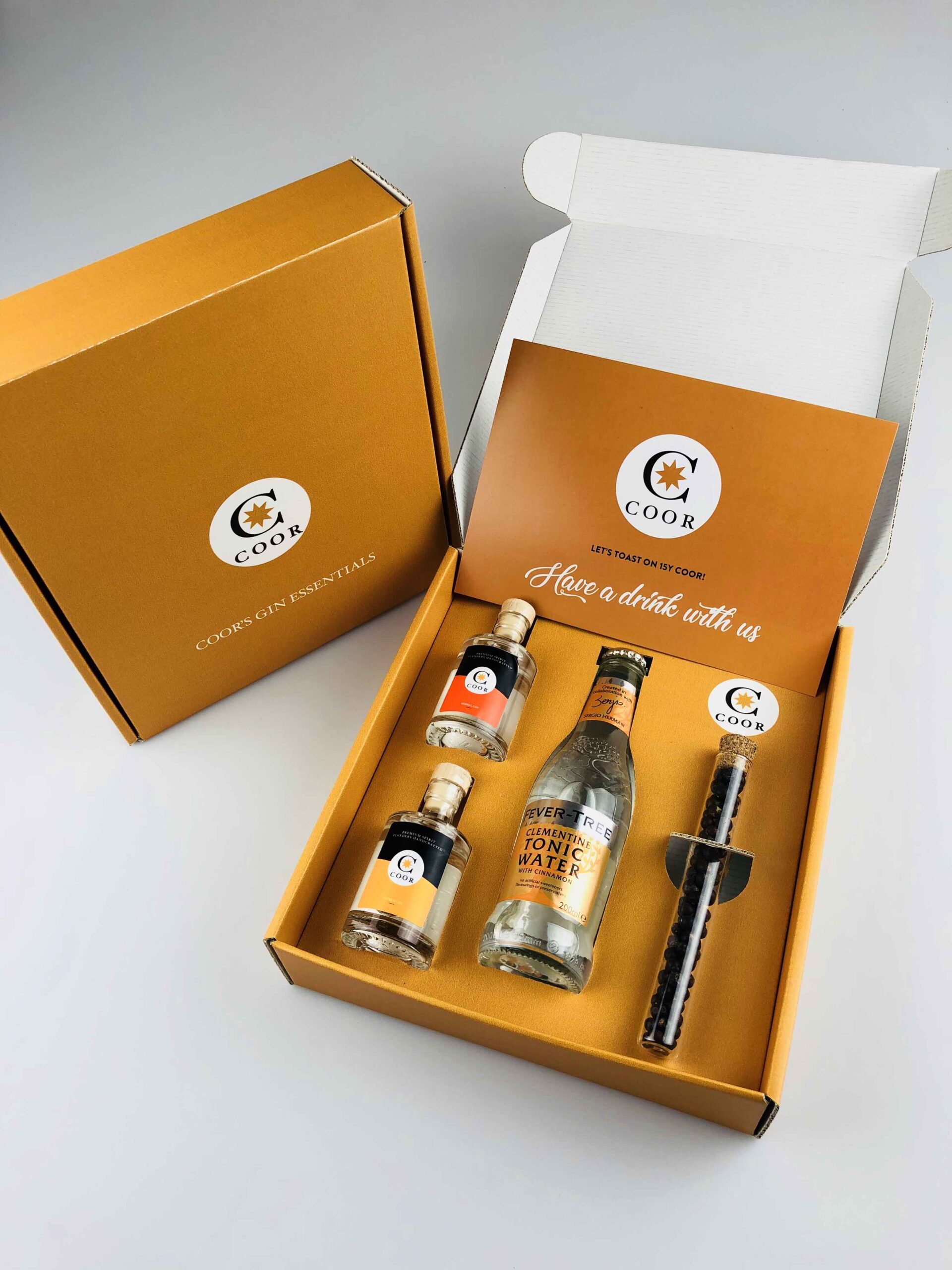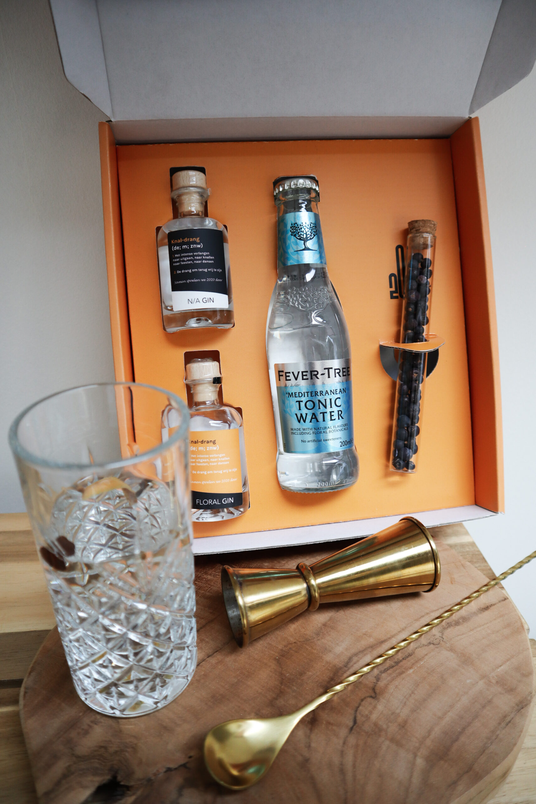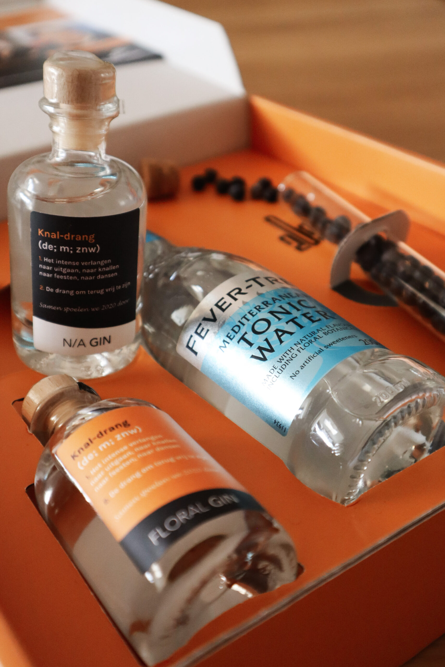 Eens je jouw fles ontworpen hebt kan je een geschenkverpakking kiezen met of zonder tonic. Ook is er keuze uit leuke extra’s