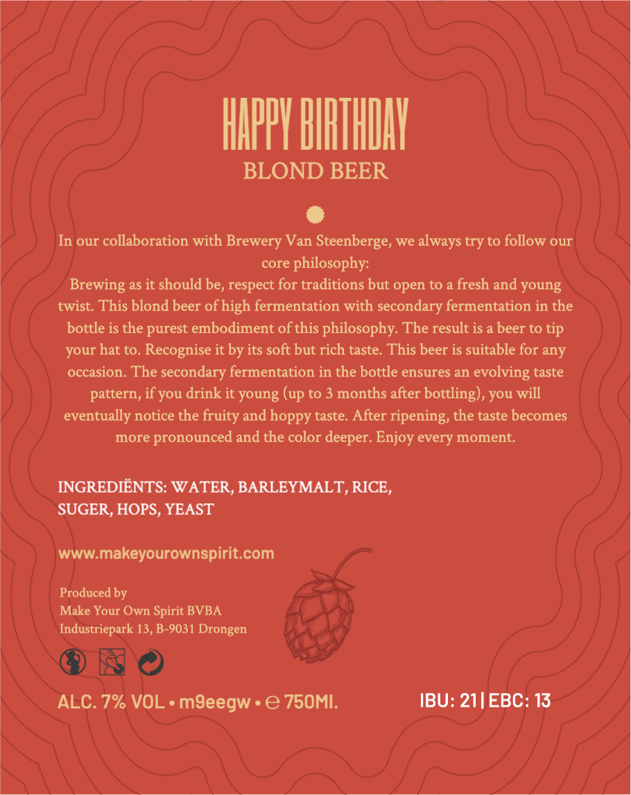 De bekrooning van onze samenwerking met brouwerij Van Steenberge is deze nieuwe Tripel: De perfecte balans tussen zoet en bitter, aangenaam in de neus en prachtig van schuimkraag.