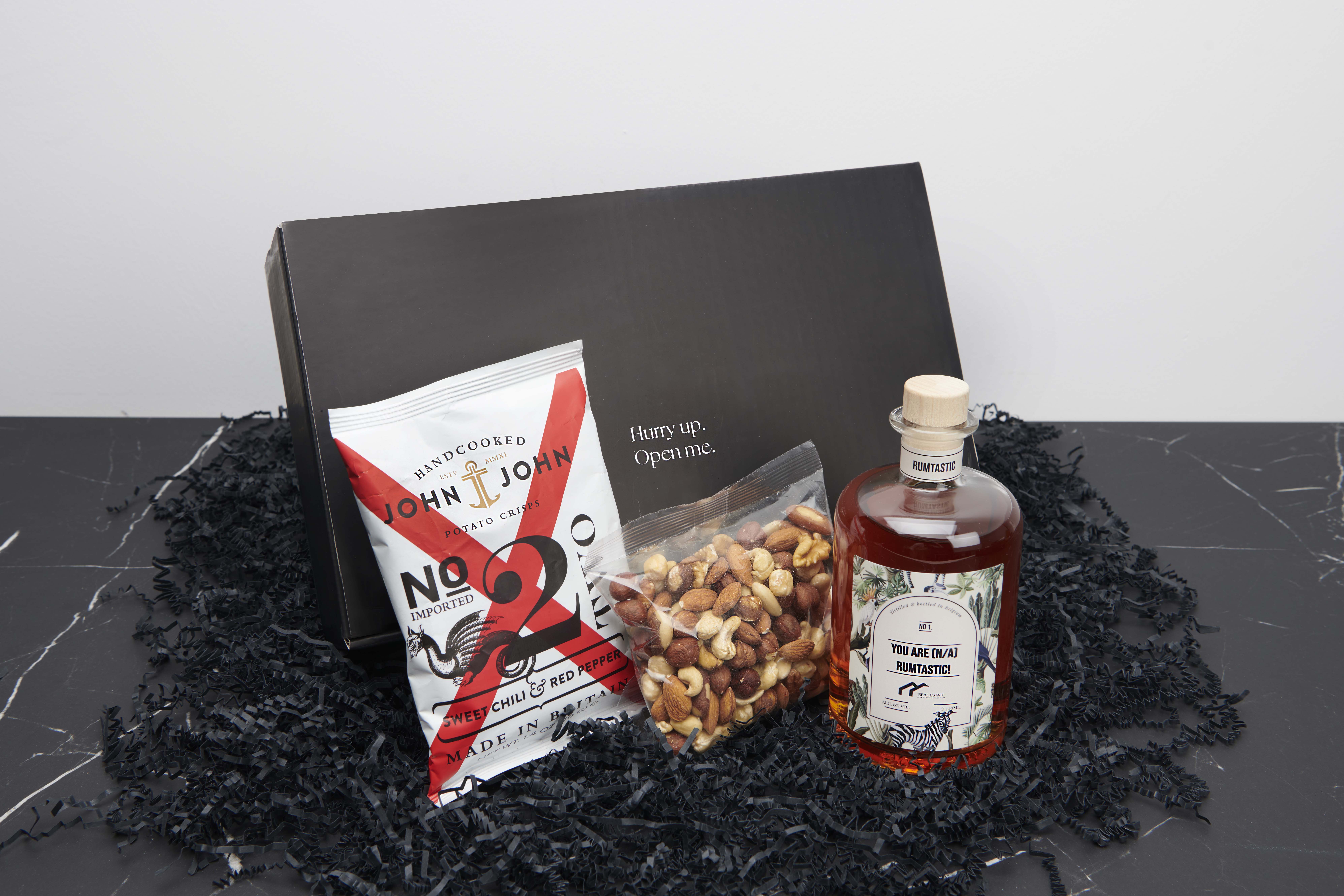 Eens je jouw fles ontworpen hebt kan je een geschenkverpakking kiezen met of zonder tonic. Ook is er keuze uit leuke extra’s