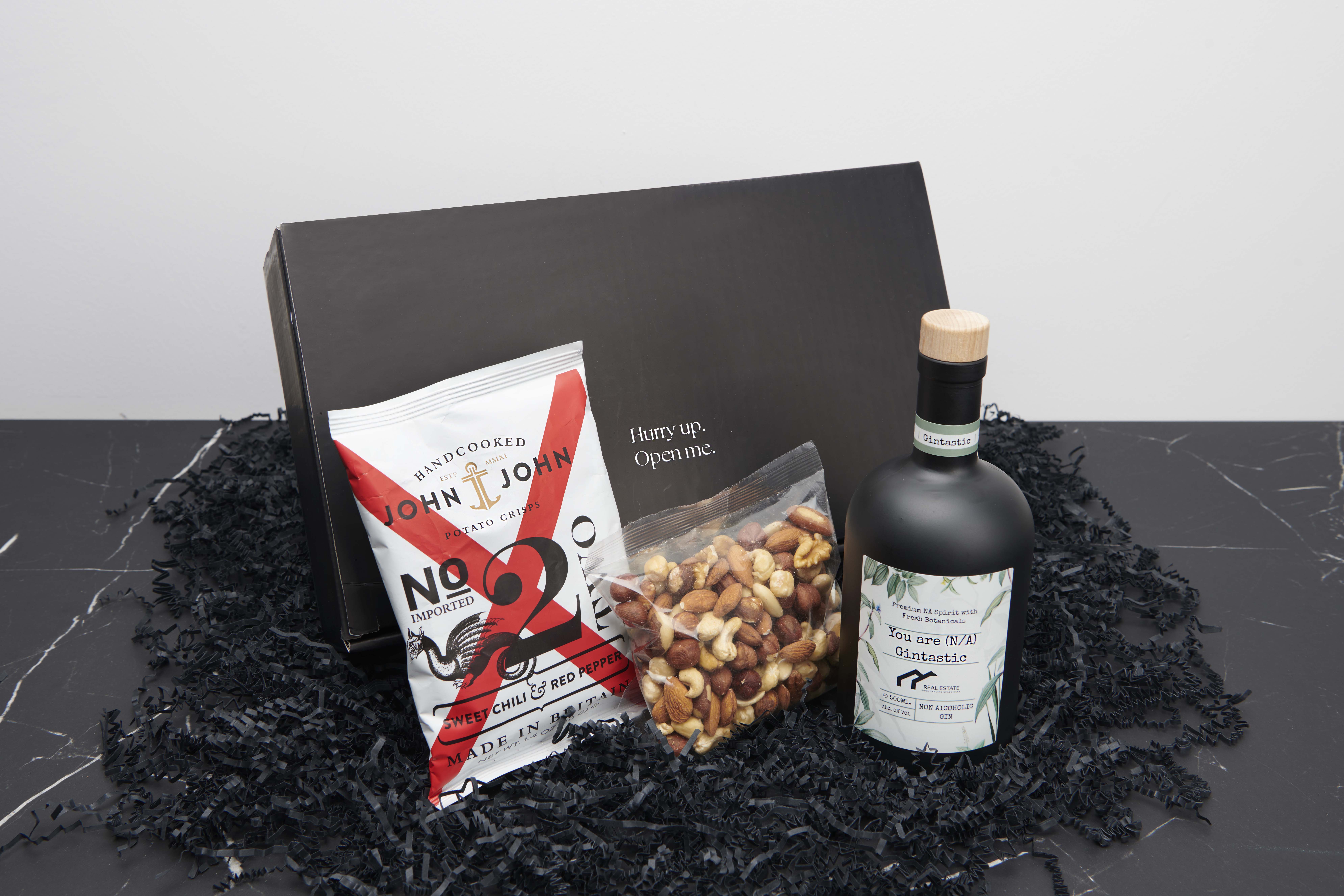 Eens je jouw fles ontworpen hebt kan je een geschenkverpakking kiezen met of zonder tonic. Ook is er keuze uit leuke extra’s