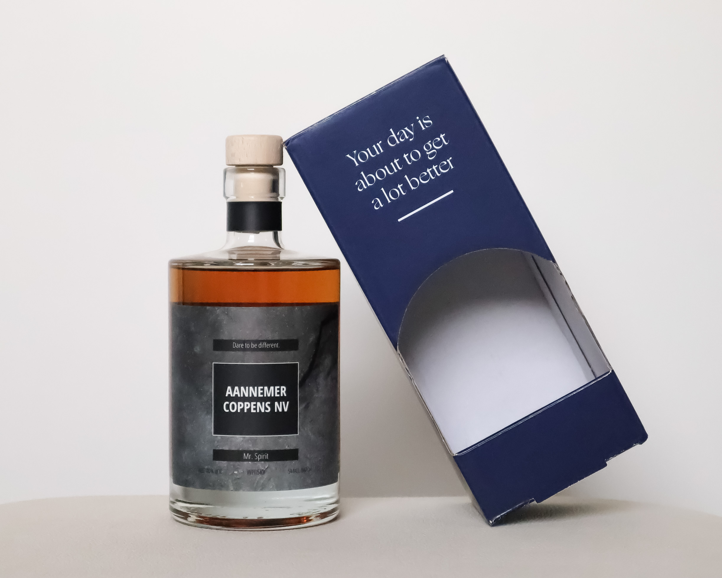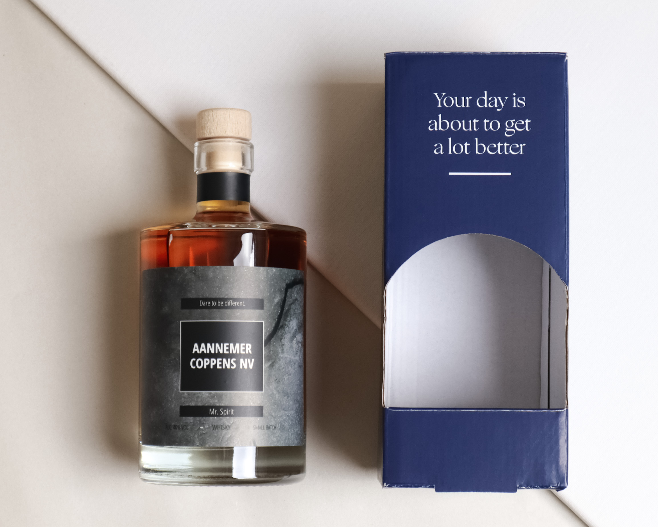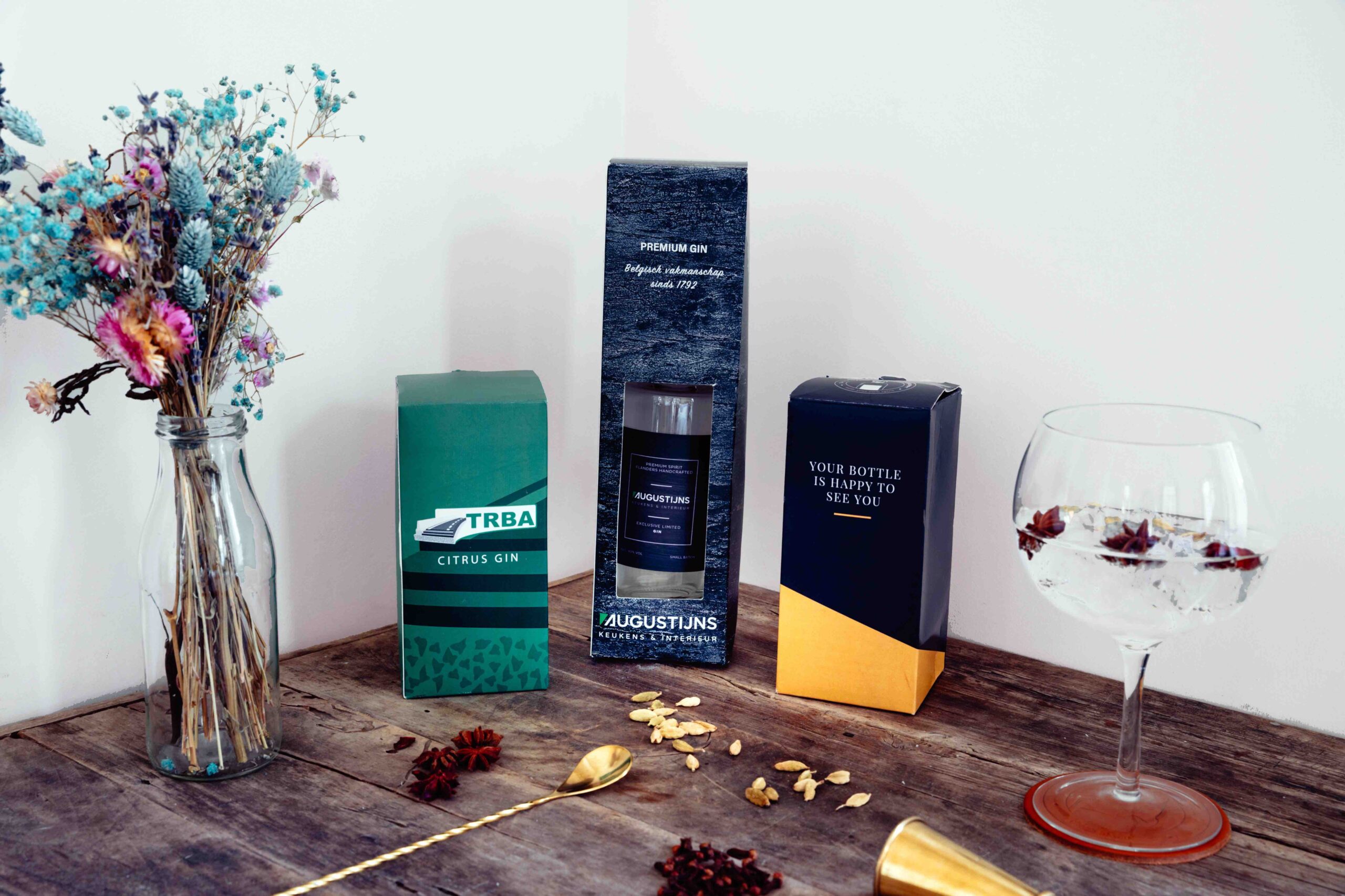 Eens je jouw fles ontworpen hebt kan je een geschenkverpakking kiezen met of zonder tonic. Ook is er keuze uit leuke extra’s