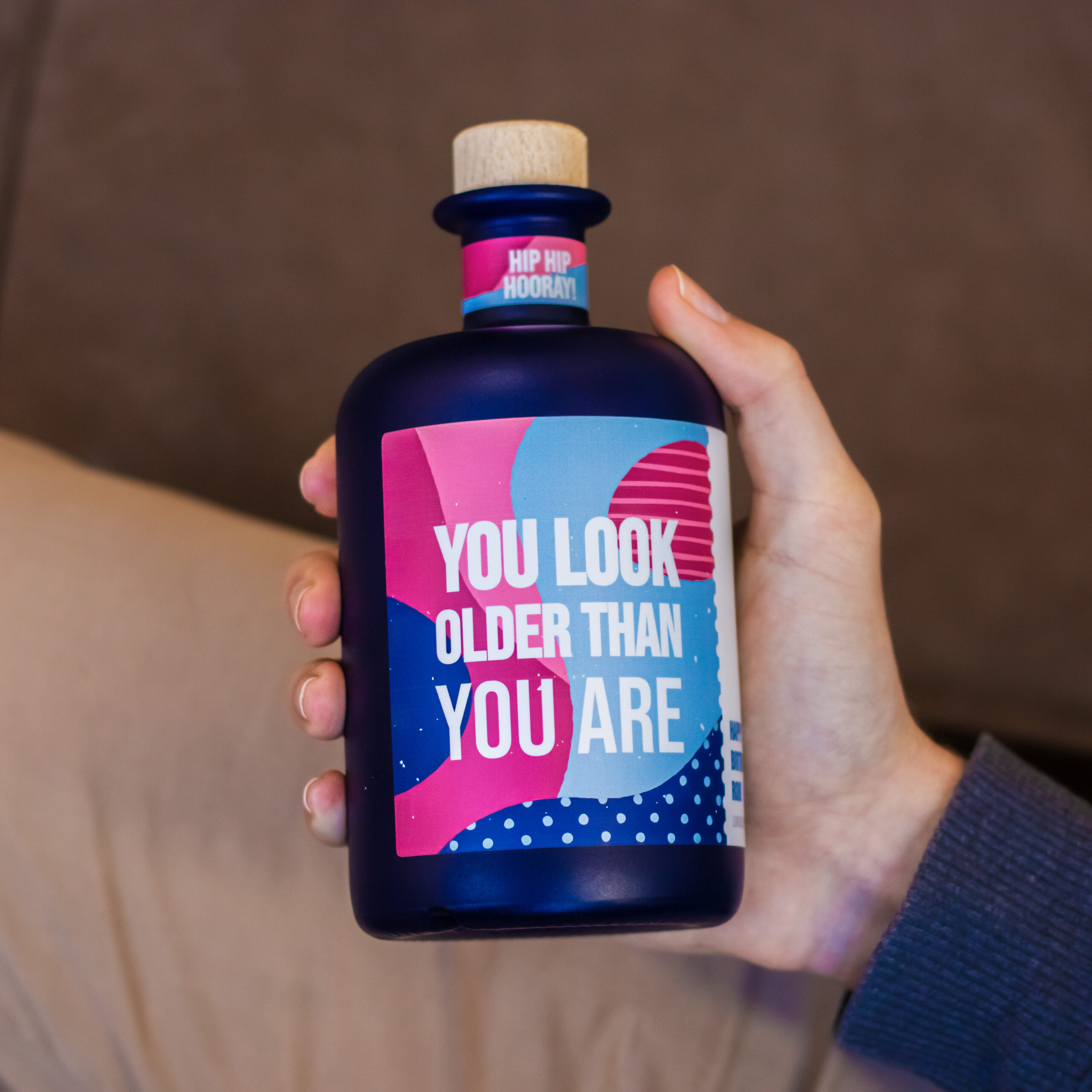 Eens je jouw fles ontworpen hebt kan je een geschenkverpakking kiezen met of zonder tonic. Ook is er keuze uit leuke extra’s