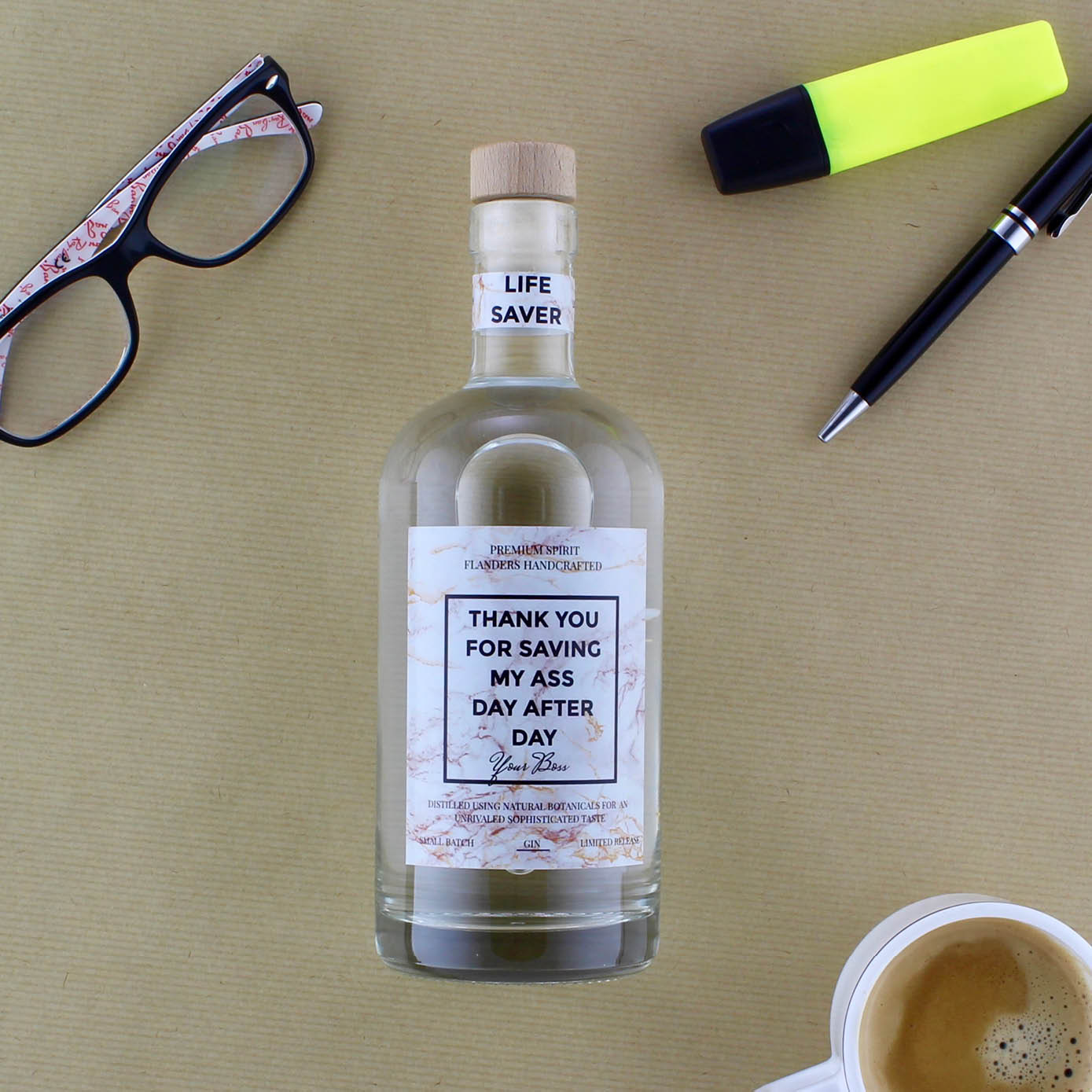 Eens je jouw fles ontworpen hebt kan je een geschenkverpakking kiezen met of zonder tonic. Ook is er keuze uit leuke extra’s